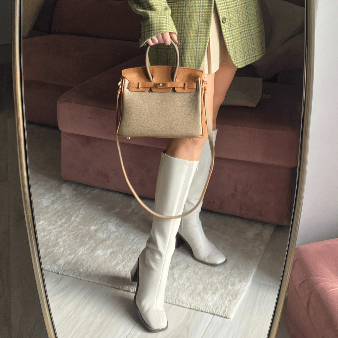 A perfect blend of style and sophistication, the Elise handbag pairs a classic design with striking side panels and a contracting strap and handle for a modern twist on a timeless classic. An exquisite accessory to set off even the simplest of outfits.
