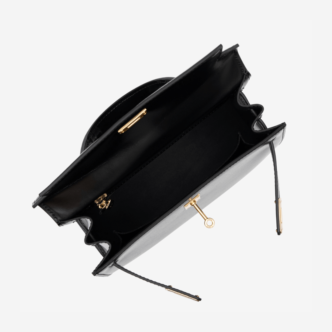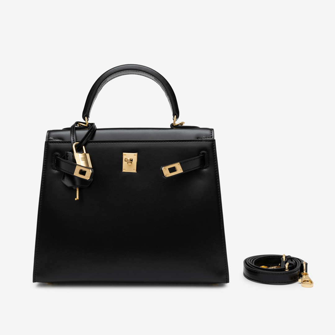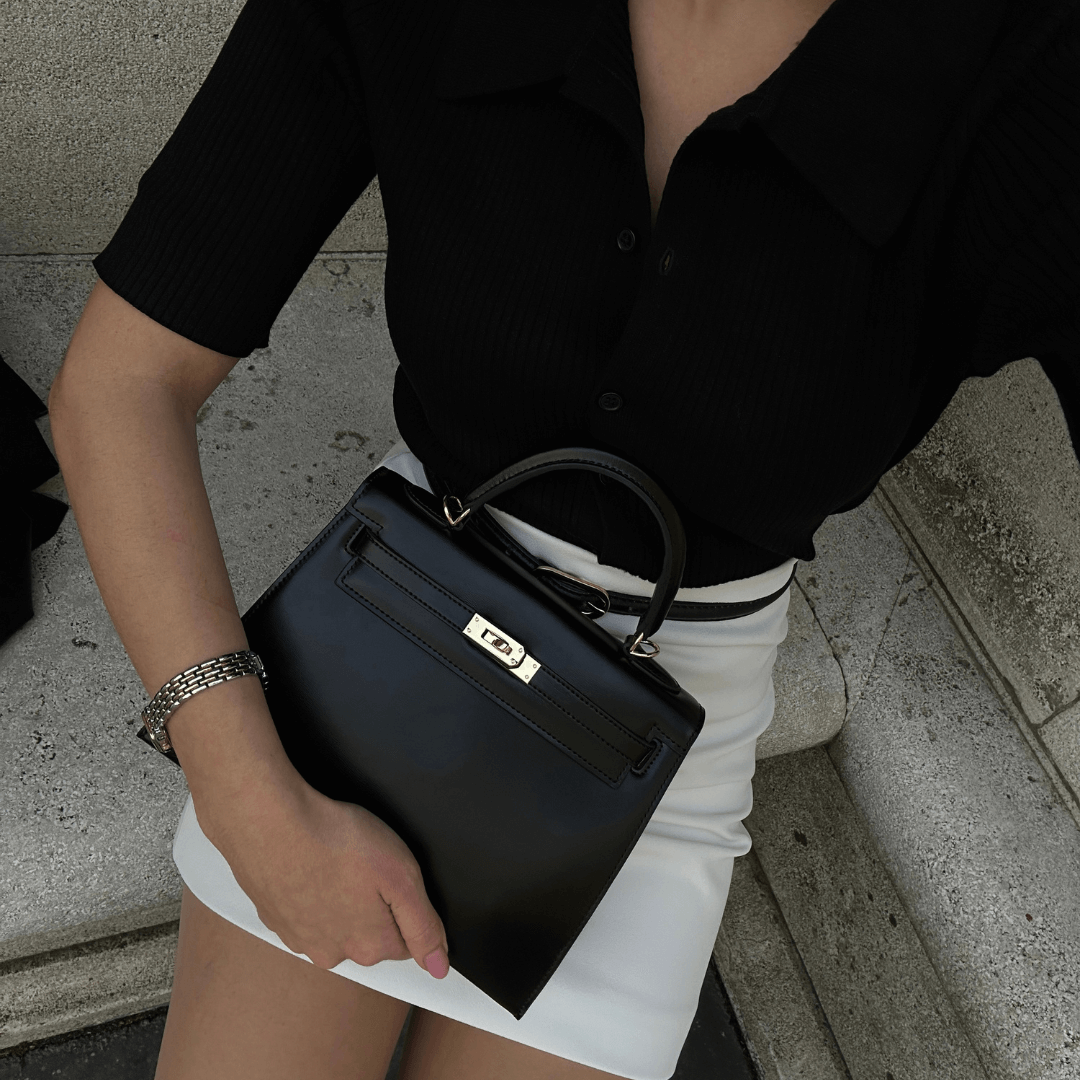 Designed in beautiful leather, creating an irresistibly chic and luxurious look. Its medium size and trapezoid shape makes it the perfect accessory for both the fashionably savvy and sophisticated trendsetters. Mia, crafted in a deep black smooth leather is ideal for everyday use, yet with enough space to store all the everyday essentials.