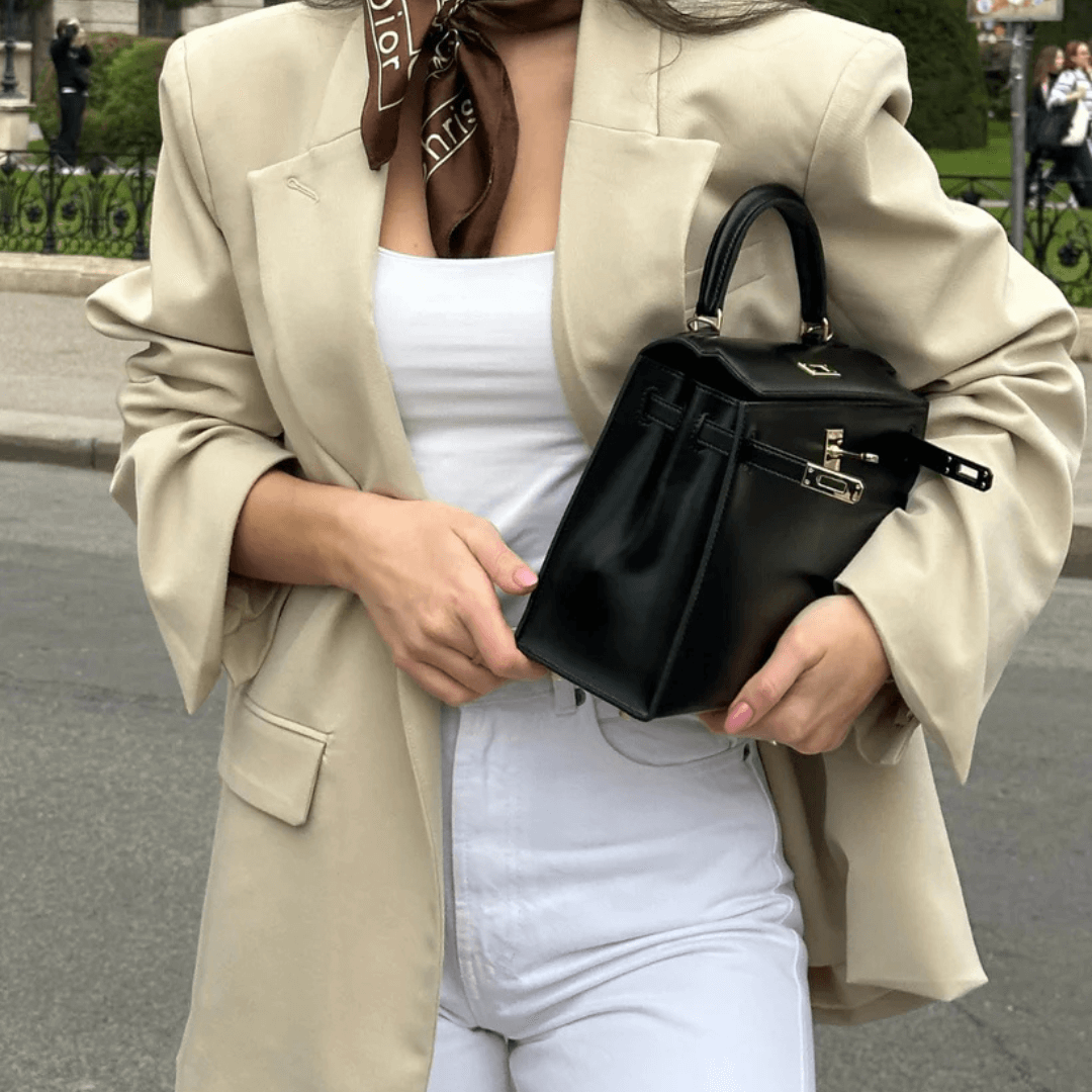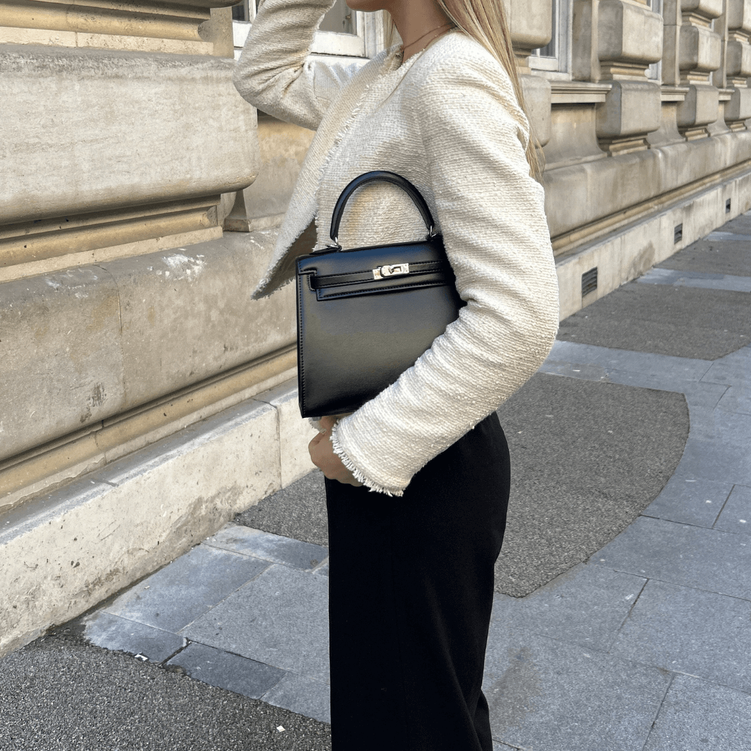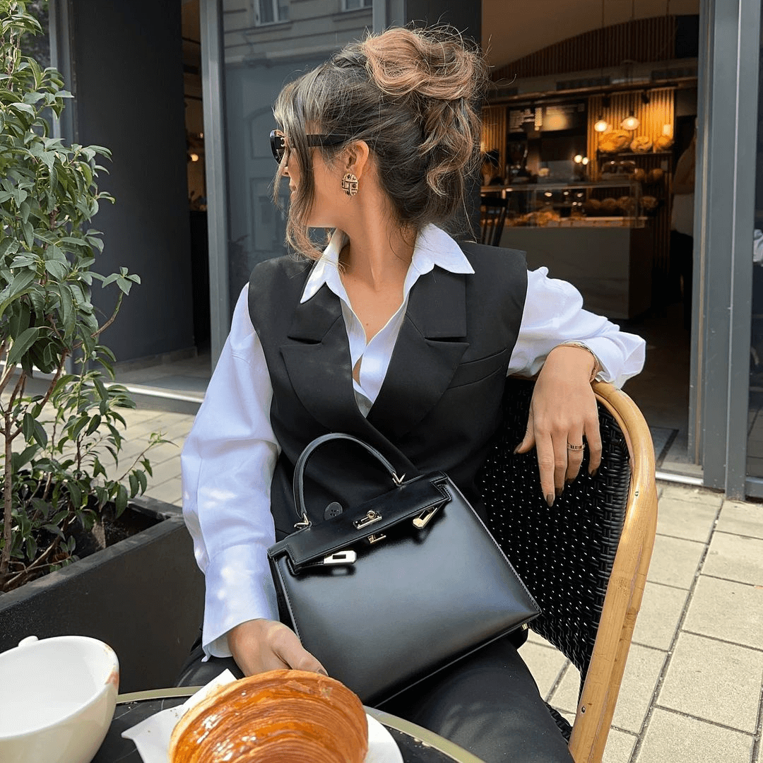 Designed in beautiful leather, creating an irresistibly chic and luxurious look. Its medium size and trapezoid shape makes it the perfect accessory for both the fashionably savvy and sophisticated trendsetters. Mia, crafted in a deep black smooth leather is ideal for everyday use, yet with enough space to store all the everyday essentials.
